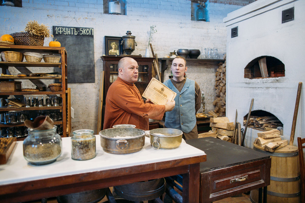 Театрализованная экскурсия с чаепитием и дегустацией калача. Вы перенесетесь в конец 19 века и увидите, как проходит день калачника и его бухгалтера, узнаете много интересных фактов о калаче, откуда пошли выражения «дойти до ручки», «свернуться калачиком» и «тертый калач».